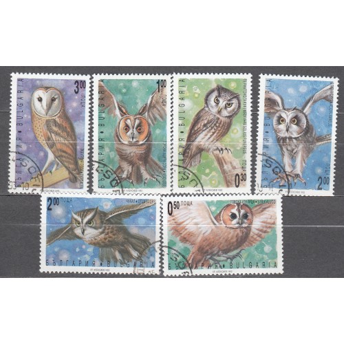 Bulgaria - Correo 1992 Yvert 3492/97 usado Fauna Aves Rapaces - Buhos