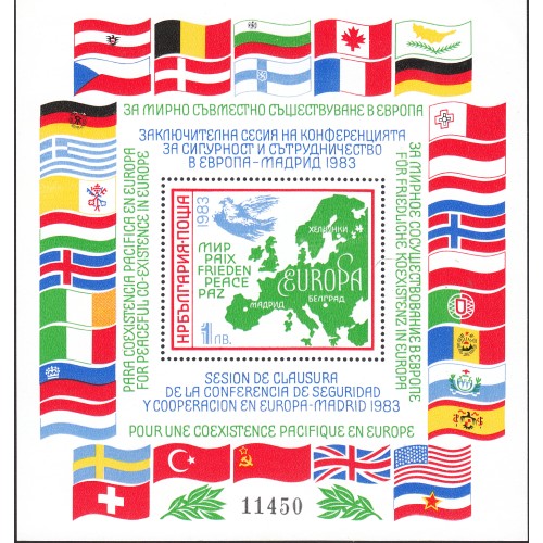 Bulgaria - Hojas 1983 Yvert 113A ** Mnh Mapa de Europa - Banderas
