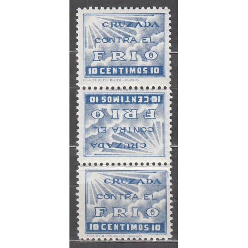 Cruzada contra el frio 1937 Edifil 15 ** Mnh Trio vertical con sello central invertido