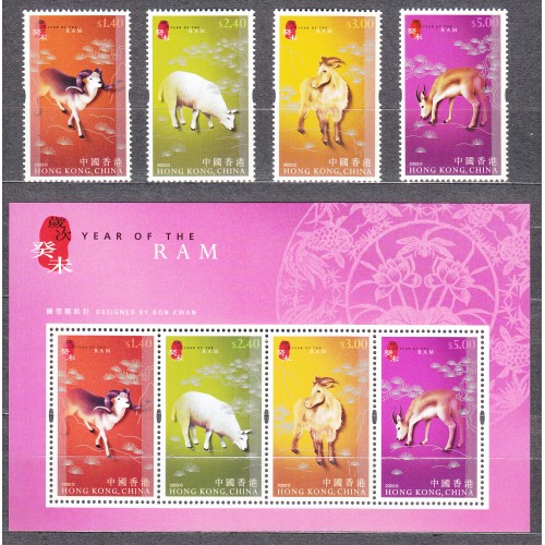 Hong Kong - Correo Yvert 1055/58+ Hoja 104 ** Mnh Año lunar del Carnero